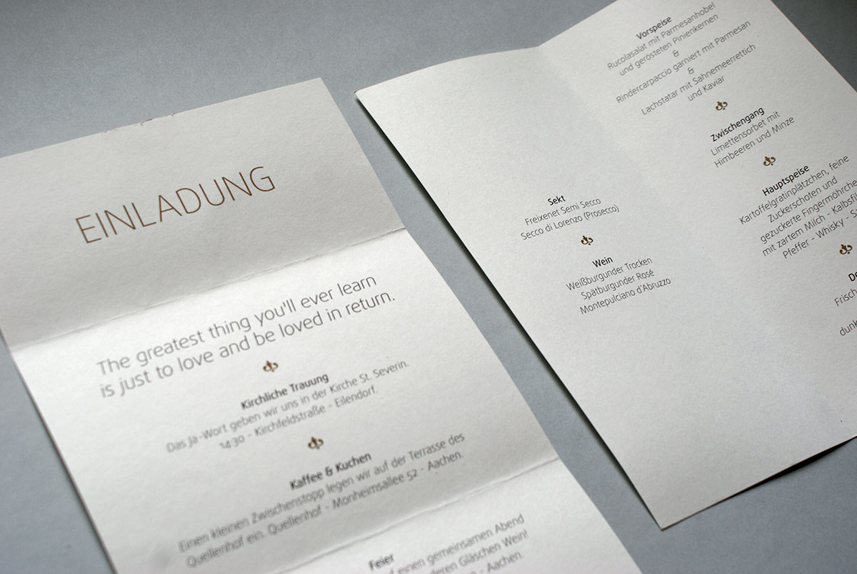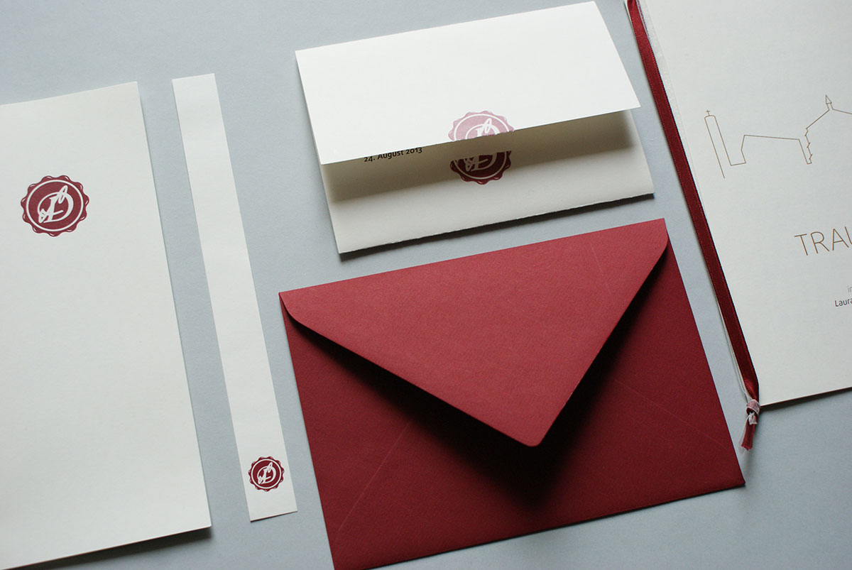 Zu dem schönsten Tag im Leben gehört auch die begleitende Gestaltung, die sich wie ein roter Faden von der Save-the-Date Karte bis hin zur Danksagung durchzieht. Laura und Dirk haben 2013 ihre Ehe mit einer großen Feier besiegelt und ich durfte meine guten Freunde gestalterisch begleiten. Danke!
